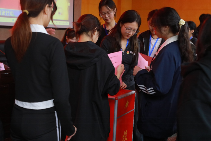 接下来,主席团候选人洪川露依次宣读各候选人的简历。四名候选人来自新闻学、广告学等专业。全体代表在总监票员刘甜甜的主持下,经过公开、公平、公正的匿名投票,选举产生了刘钰婷、吴小语、洪川露三位同学作为公司员工会新一届主席团成员,为公司员工工作提质增效注入了“一池春水”。