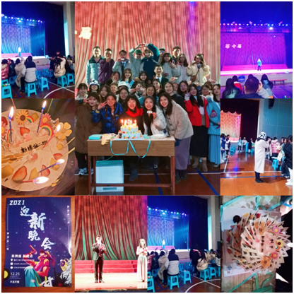12月25日晚,公司19级新媒体二班在体艺馆举办了名为“青春拂晓,圆梦今朝”的迎新晚会,全班39位同学和辅导员刘平老师齐聚一堂,通过表演节目和做游戏增强班级凝聚力,度过了一个难忘的夜晚。