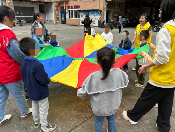 (志愿者和小朋友们玩游戏)