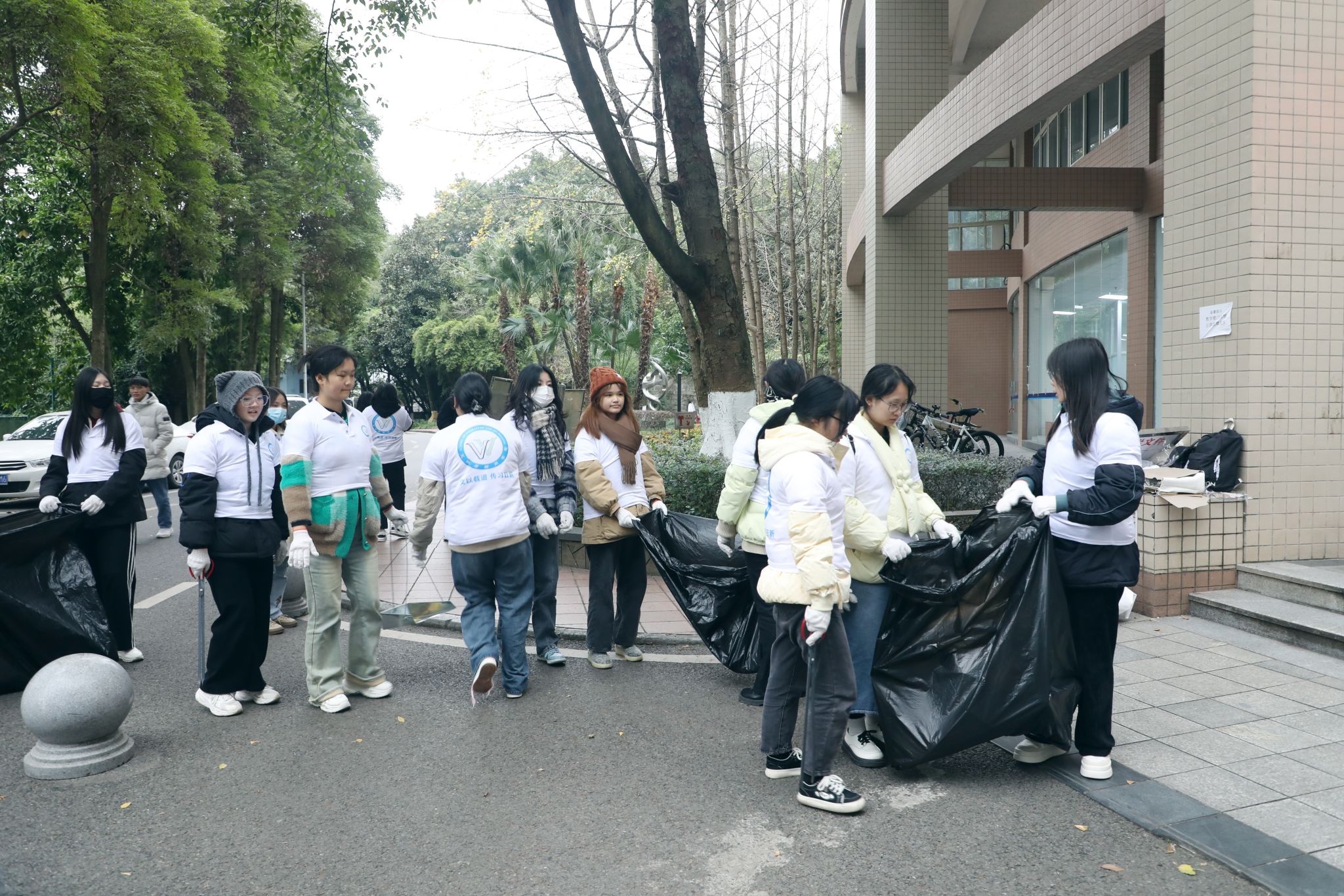 本次劳动教育实践活动面向公司22级全体同学,以班级为单位分别负责教学楼及周边区域的清扫工作。活动现场,同学们冒着凛冽的寒风有条不紊地开展劳动工作,他们分工明确、团结协作,通过捡拾垃圾、清扫落叶等形式在劳动中挥洒汗水,感受劳动实践的快乐。最终,经过同学们的一番共同努力,教学楼及周边区域的垃圾、落叶被全部清扫干净,为营造整洁舒适的校园环境贡献了青春力量。