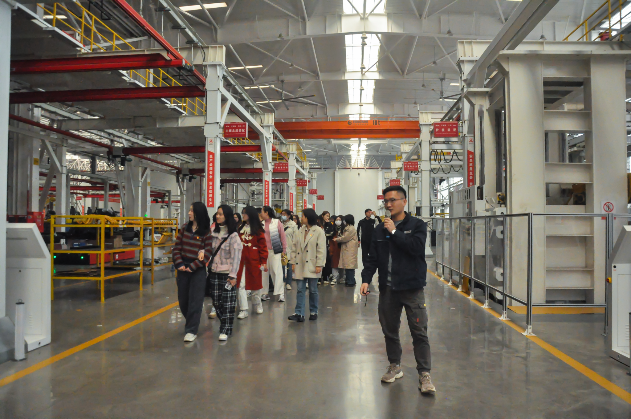 三一重工两江智能制造基地人力资源部张亚飞老师详细介绍了企业经营状况、技术创新、市场拓展、人才需求等方面的情况。明月湖协同创新中心陈封冰老师带领师生们参观了明月湖协同创新展览馆,认识了多款“硬核”科技产品,感受到了科技创新的魅力,也详细介绍了中心科研院所、企业用人需求的有关情况在走访过程中,于书记就公司办学理念、专业特色、人才资源进行了推介,双方就今后的专业实习、人才招聘、科研共建等方面进行了初步探讨,并表示希望未来能够有更多机会展开合作,携手同行。
