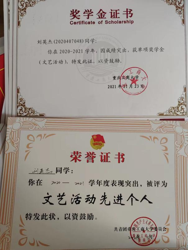在校部分获奖履历: