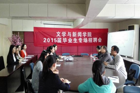 10月30日下午,重庆晚报办公室主任谢淙泉、副主任赵庆博一行在公司90526会议室举行重庆晚报定向实习生招聘会。tyc5997太阳集团就业联络员肖婷老师、2011级10名毕业生参加了本次招聘会。