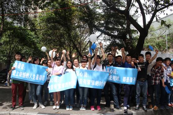 2015年4月2日为第八个世界自闭症日,在世界自闭症日到来之际,公司“青未了”义协的志愿者们参加了由公司市民公司——重庆市启明星智障儿童康复托养中心与重庆阳光职业康复园、慧灵、童乐、向日葵等六家机构在南滨路联合举办的“壹基金海洋天堂计划—“蓝色骑行”大型倡导活动”。