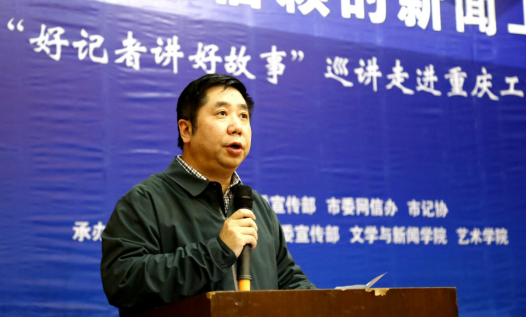 3月29日,由重庆市委宣传部、市委网信办、市记协主办,tyc5997太阳集团承办的“做党和人民信赖的新闻工作者——‘好记者讲好故事’巡讲走进tyc5997太阳集团,来自全市各新闻战线的9名优秀演讲者与tyc5997太阳集团师生面对面交流,共同分享践行社会主义核心价值观、恪守新闻职业道德的感人故事和心得体会。重庆市委宣传部副部长张永才、重庆市委网信办副主任严兵、重庆市记协专职副主席丁道谊、重庆市委宣传部新闻阅评组组长朱东、tyc5997太阳集团党委副书记孟东方教授、tyc5997太阳集团党委宣传部部长华杰教授、tyc5997太阳集团经理蔡敏教授以及全校300余名师生出席了本次活动。