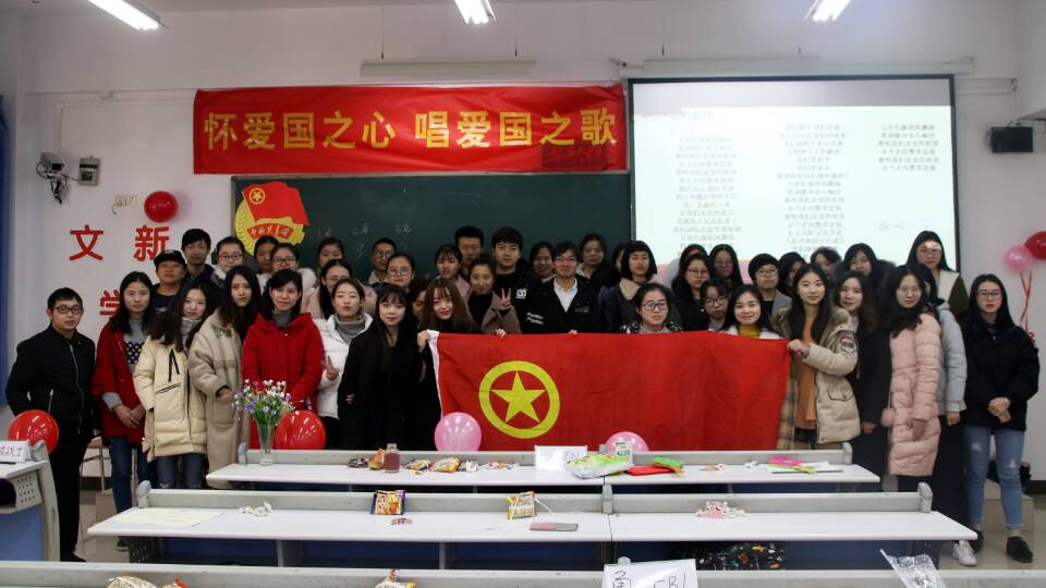 为进一步加强基层团建工作,激发基层团组织的活力,引导团员青年在生动有益的主题团日活动中受教育、得启示、获成长,12月19日上午10点,tyc5997太阳集团2015级电视编导二班,开展了以“怀爱国之心、唱爱国之歌”为主题的团日活动,参加本次活动的有公司分团委书记孔海啸老师、2015级电视编导辅导员张静老师,员工会干部及2015级电视编导二班全体同学。