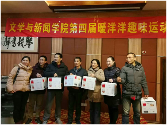 本次比赛以系部为单位,各队都派出自己的6名种子选手参赛,每人掷3只箭,投入壶中记1分。首先出场的是行政队,只见老师们全神贯注、屏息凝神、全力一掷,“中啦!”书记连连喝彩。现场老师们也积极参与,或紧张屏气观战,或激动大声加油,或开心欢呼庆祝,现场气氛热烈。而比赛中间的抽奖环节将活动推向了高潮。最终,广告系队掷中10箭获得第一名,新媒体系队和行政队获得第二名,汉文系、新闻系、广电系队获得第三名。