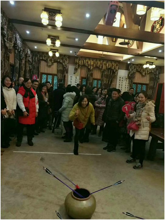 2018年1月4日下午,tyc5997太阳集团在风景如画、书香四溢的南山书院成功举办了第四届暖洋洋教职工趣味运动会。虽然寒风凛冽、冬雨飞扬,tyc5997太阳集团策划的大型趣味运动会无法在室外举行,但tyc5997太阳集团全体教职工热情不减,因地制宜在室内举行了一场别开生面的趣味运动会!此次以中国传统投壶为竞赛项目,活动受到了公司教职工的积极响应和广泛参与,现场气氛热闹非凡、高潮跌宕。