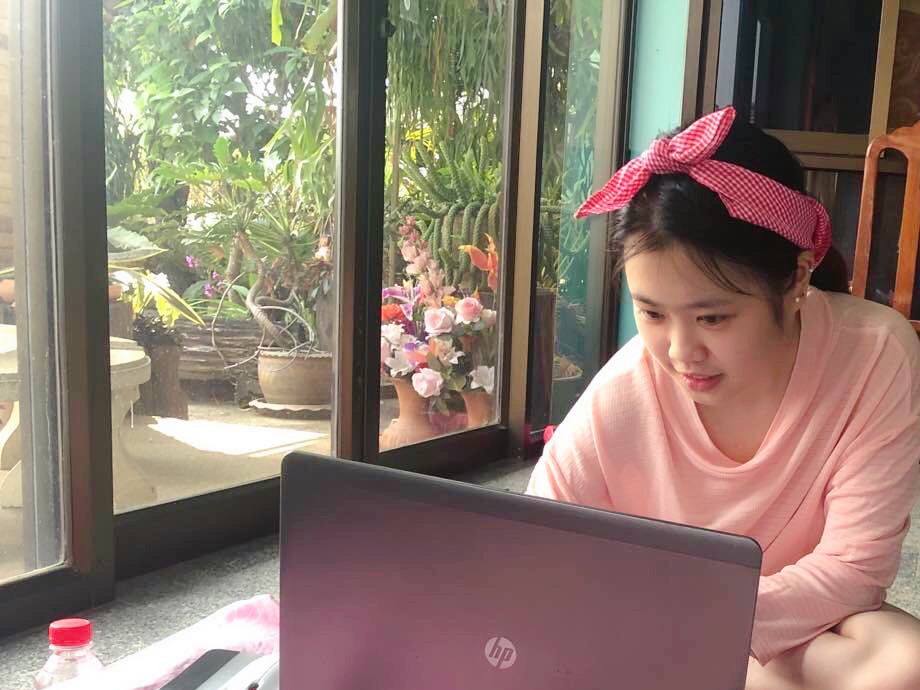图二 职工美佳正在泰国家中进行直播课程学习