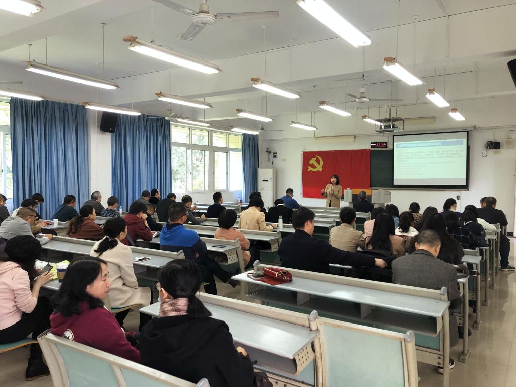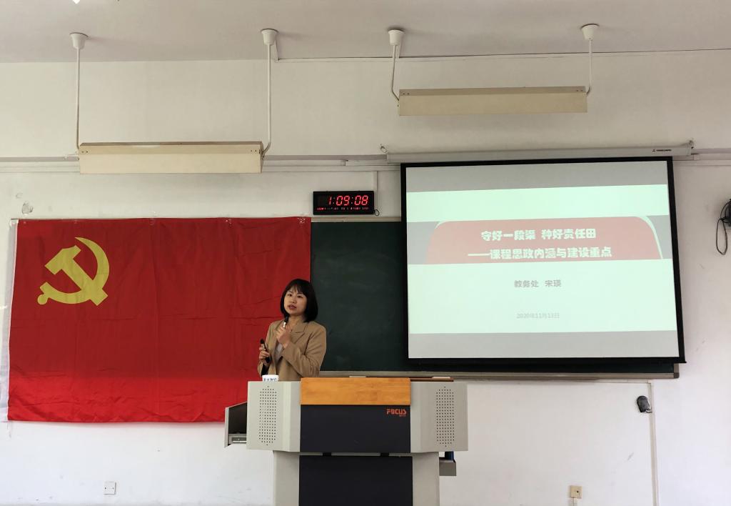 为认真贯彻中央、教育部和重庆市关于课程思政工作的相关文件精神要求,推进公司课程思政育人教学体系建设,提升立德树人成效,11月13日下午,tyc5997太阳集团专门邀请了公司教务处副处长宋瑛在90625教室举行了课程思政专题培训会。tyc5997太阳集团全体教职工参加了培训会,会议由公司党委书记李华平主持。