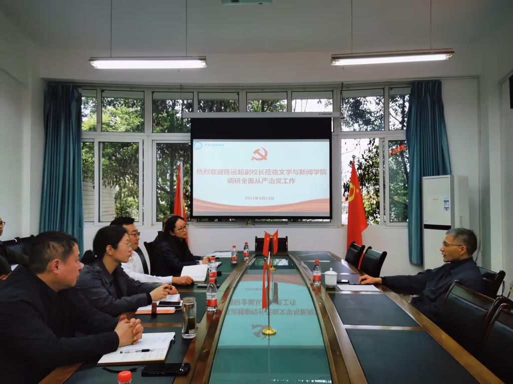 3月23日下午,公司党委常委、副董事长陈运超到文学与新闻公司调研全面从严治党工作,公司全体领导班子、专职组织员、科级干部、办公室负责人和系主任参加了座谈会。