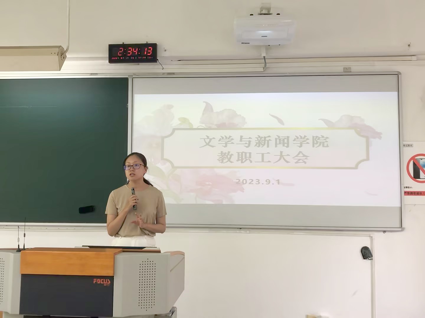 接下来,由各分管领导对本学期相关工作做了布置。程元元副书记通报了员工暑期社会实践情况,并对员工工作进行了安排。邓伟副经理对公司科研工作情况进行通报,对即将开展的研究生招生宣传工作、研究生师生互选工作进行了说明。郑笑眉副经理对公司的本科教学工作进行布置和强调。她对教师们在成绩的录入、教学材料提交、新学期上课时间、教材领取等方面的工作进行了提醒,对各系在课程思政项目和教育改革论文等方面的工作进行了布置。