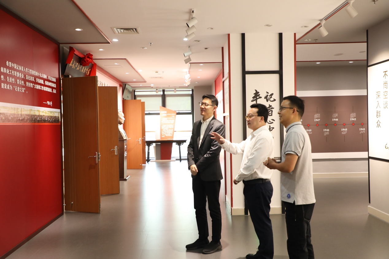 上午8时许,韦路来到范长江与重庆展览馆参观。在范长江与重庆展览馆,谈华伟担任讲解员,从范长江大事记和报纸墙、范长江简介、范长江与重庆、范长江对新闻事业的贡献、长江韬奋奖五个部分为韦经理讲述了范长江与重庆的故事。韦路指出,范长江是新中国新闻事业的奠基人,在中国现代新闻史上具有重要的地位,要充分利用好红色资源,将范长江与重庆展览馆作为教育资源新闻传播人才培养重要的教育资源,践行马克思主义新闻观。