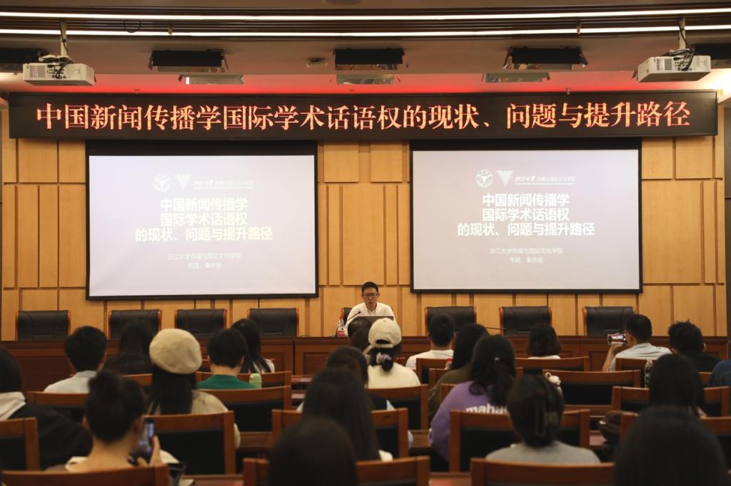上午10点,韦路为公司师生带来了一场题为“中国新闻传播学国际学术话语权的现状、问题与提升路径”的学术讲座。现场座无虚席、气氛热烈。讲座由殷俊主持,公司多名教师和100多名研究生参加。