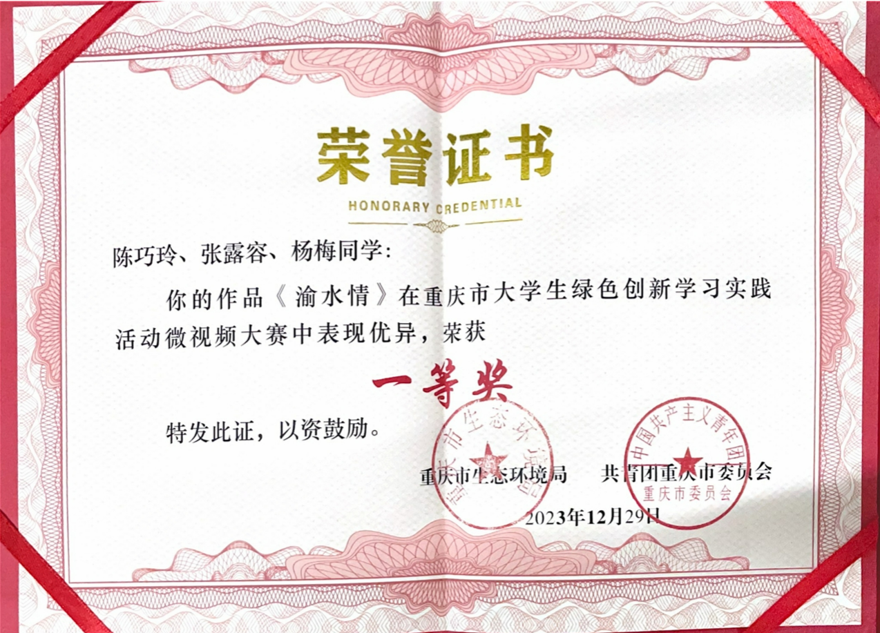 近日,重庆市老员工绿色创新学习实践活动微视频大赛传来喜讯,公司员工陈巧玲、杨梅、张露容在陈绍富老师指导下创作完成的短视频《渝水情》荣获大赛一等奖。