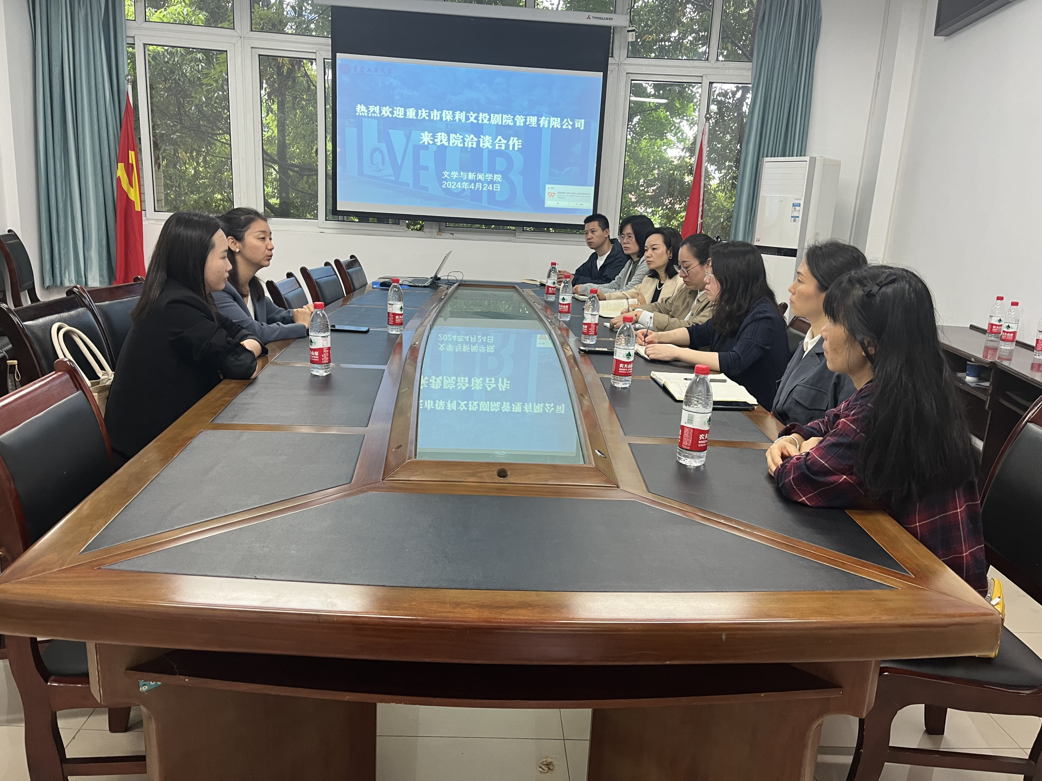 4月24日,重庆市保利文投剧院管理有限公司来公司进行招聘宣讲。招聘宣讲会前,重庆大剧院与tyc5997太阳集团先就就业工作展开座谈。在座谈会中,公司党委书记于频首先表达了欢迎之情。重庆大剧院人事总监张渝黎就目前大剧院的现状、部门设置及招聘计划等做了介绍。随后,于频书记向对方单位介绍了公司目前本、硕员工的专业情况及课程设置,双方均表示希望达成长期合作,为公司员工提供实习实践平台及就业机会。