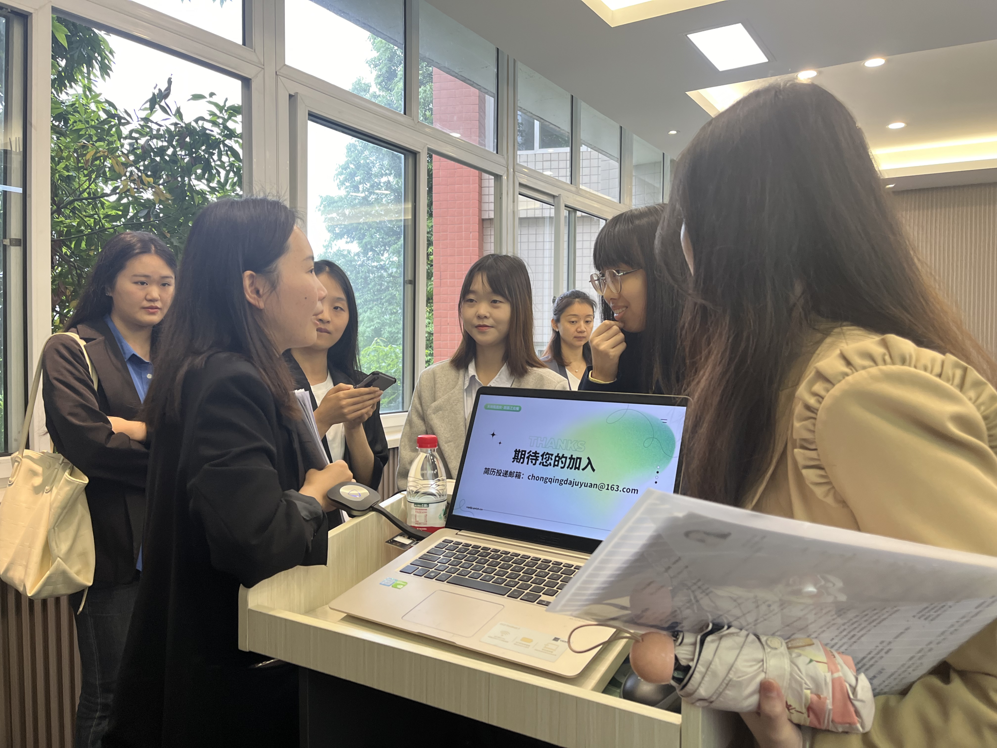 宣讲结束后同学们毕业生同学们纷纷投递简历,到场的非毕业年级员工也就自己关心的问题进行了咨询。