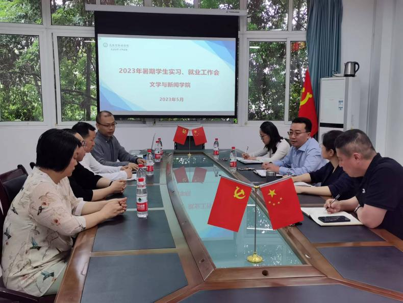 为顺利推进2020级员工实习、就业工作,公司于2023年5月22日上午在慧智楼80528召开2023年暑期员工实习、就业工作会,公司党委书记于频、经理殷俊、副书记程元元、副经理郑笑眉,汉语言文学系主任周之涵、网络与新媒体系主任姚琦、新闻系主任张玉霞、广播电视系王瑞林、广告系主任王凌峰参加了会议,会议由殷俊经理主持。