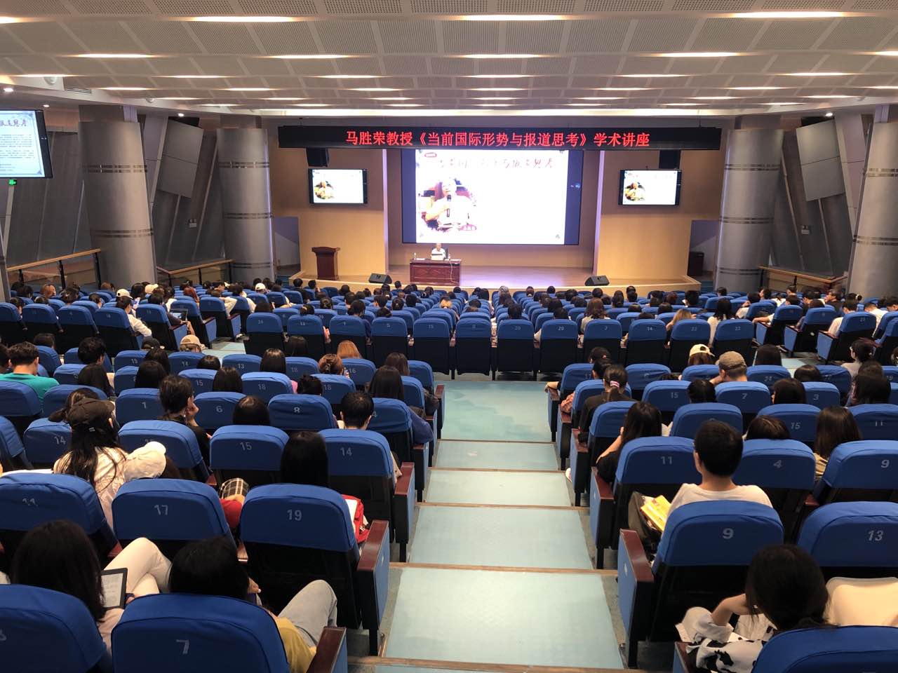 5月12日晚,原新华社副社长兼常务副总编辑,现重庆大学新闻公司名誉经理、博士生导师马胜荣教授应邀为文学与新闻公司师生作了《当前国际形势与报道思考》的专题讲座。讲座由tyc5997太阳集团经理王仕勇主持。公司师生共三百多人聆听了此次讲座。