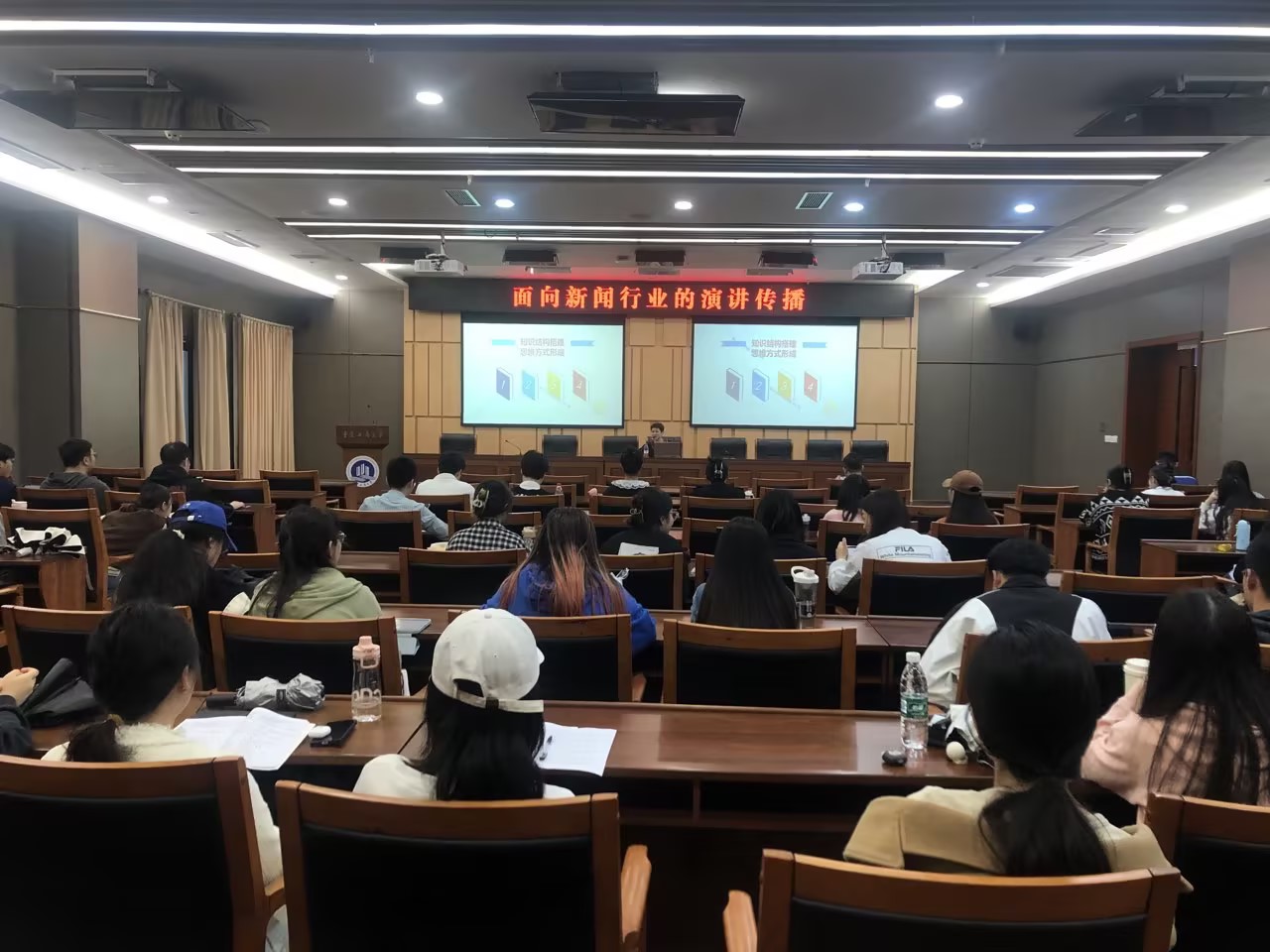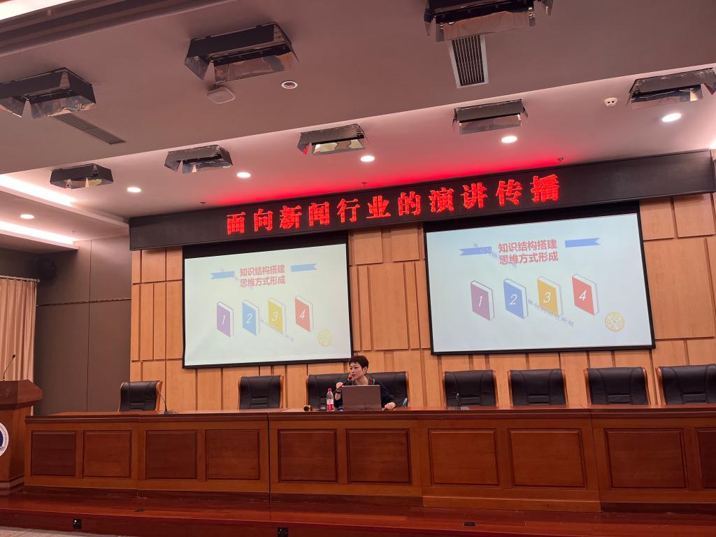 10月25日上午,重庆电视台主持人、主编、重庆广播电视集团(总台)播音专委会副秘书长向晶应邀来公司作《面向新闻行业的演讲传播》专题讲座,讲座在图书馆会议中心一会议室举行,由副经理郑笑眉主持,新闻传播学研究生参加。