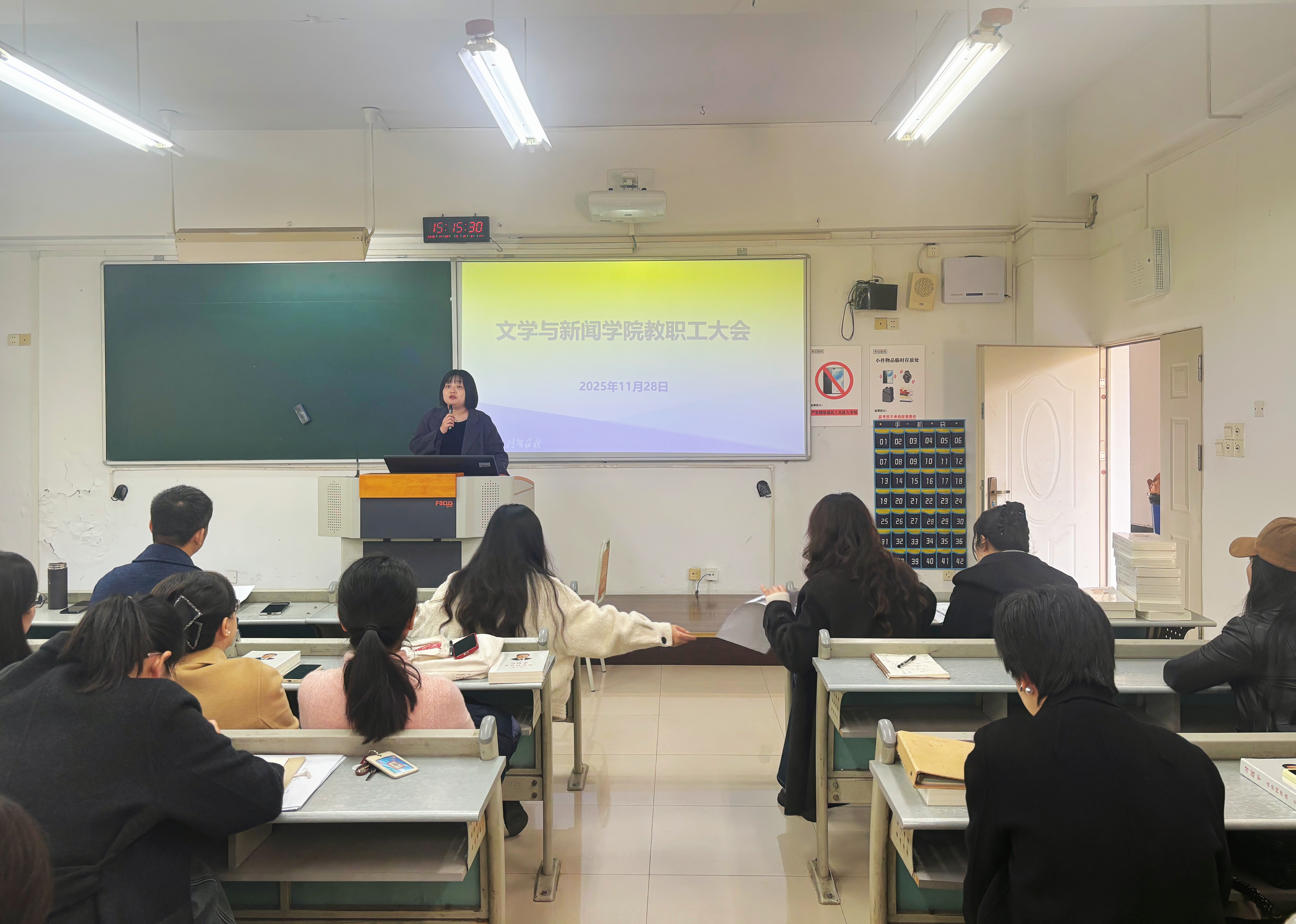 为进一步加强教职工思想政治建设,提升师德师风水平,凝聚公司发展合力。2025年11月28日,tyc5997太阳集团在慧智楼90625教室召开11月教职工大会。公司领导班子及全体教职工参加会议。会议由党委书记潘焱主持。