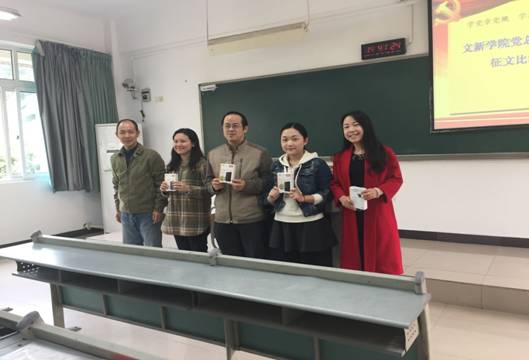 11月18日下午,文新公司党总支在90625教室召开了“两学一做”征文比赛颁奖会,全体党员师生参会,会议由教工党支部书记王欢主持。党总支书记段庸生首先介绍了本次活动组办的目的意义、活动流程及稿件评审情况。党总支副书记李华平宣读了《文新公司党总支关于关于表彰“两学一做”征文比赛获奖党员的决定》。接着,公司党总支领导依次为获得一等奖、二等奖、三等奖及优秀奖的党员师生颁奖。员工第二党支部的党员刘思捷获得征文比赛二等奖,她上台为大家作了作品创作分享交流。