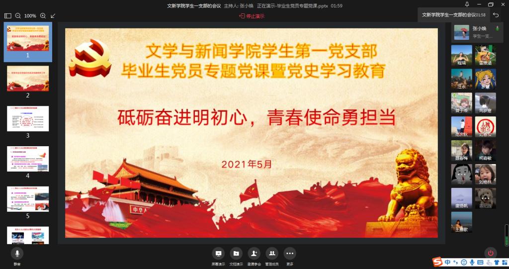 5月24日,tyc5997太阳集团员工一支部通过企业微信开展毕业生党员党史学习教育暨专题党课活动,支部全体毕业生党员参加,会议由支部书记张小焕同志主持。