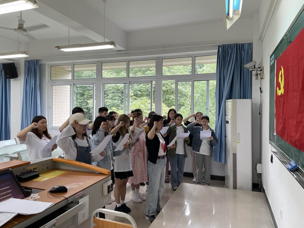 宣誓结束,刘平老师叮嘱各位党员同学应该积极发扬党员精神,大力弘扬新时代共产党人的奉献精神,用实际行动践行党员的精神,努力完成新时代党的历史使命交给我们的重大任务,在广大同学中起到先锋模范作用的要求。