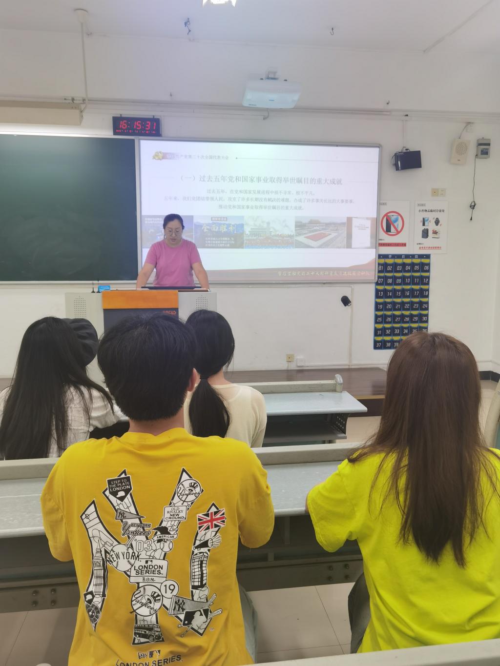 在此次专题党课上,唐玉星老师带领全体党员集体学习了中国共产党第二十次全国代表大会报告。唐老师首先深入详实的向党员们阐述了党的二十大会议精神,其中她重点讲述了党和国家过去五年的工作和新时代十年的伟大变革。她提到在过去五年党和国家事业取得举世瞩目的重大成就,这激励我们青年党员要砥砺奋进新征程;而在新时代十年,中国共产党在思想、理念等各个方面都取得了历史性成就和变革,其中就包括创立了习近平新时代中国特色社会主义思想,她指出广大党员要以实际行动拥护“两个确立”、坚决做到“两个维护”。