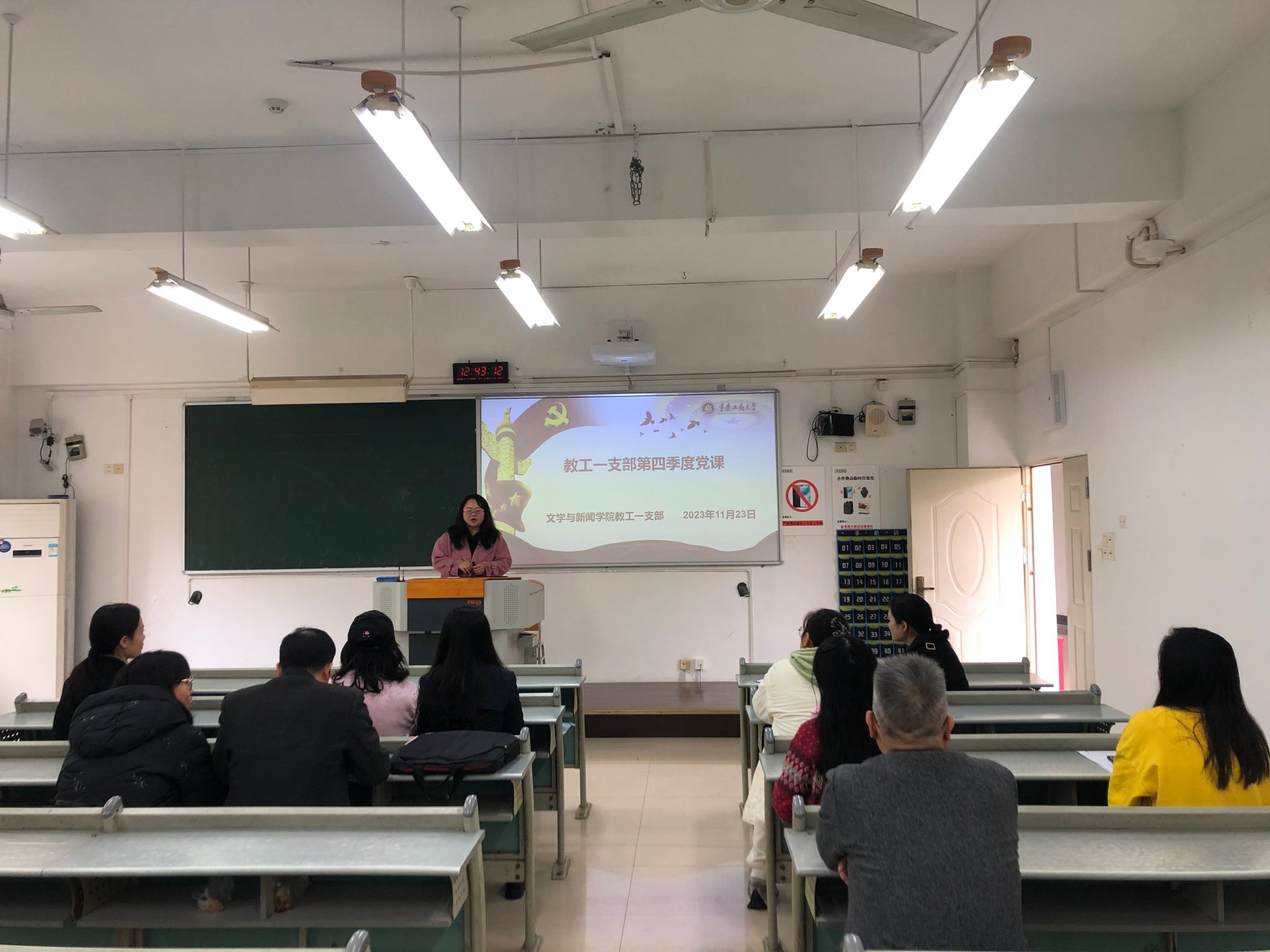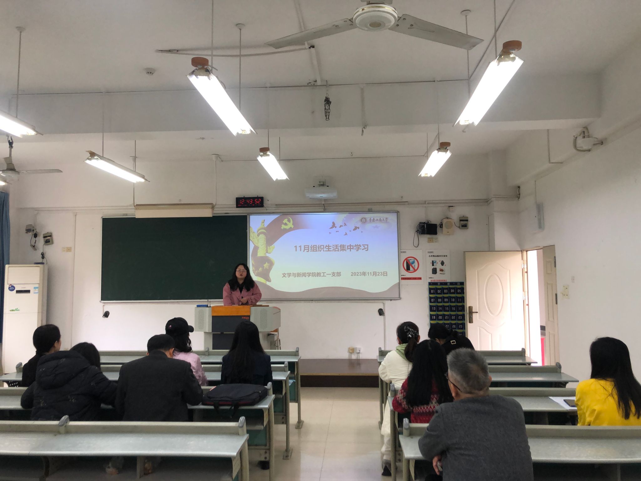 随后教工一支部开展2023年第四季度党课学习,由支部书记主讲题为《挖掘长江文化意蕴 讲好长江文化故事》的党课,以习近平总书记在江西省南昌市主持召开进一步推动长江经济带高质量发展座谈会并发表的重要讲话为切入点,从“追溯最悠久的长江文化渊源”“挖掘最深刻的长江文化意蕴”“绘制最壮美的长江文化发展蓝图”三个方面介绍了习近平总书记在重要讲话中所强调的,保护传承弘扬长江文化,深入发掘长江文化时代价值的重要性。长江文化承载着守正创新的使命意识,展现了协同合作的实干精神,我们应当守护长江文化自信,宣扬长江文化精神,促进文化对外交流,加大长江文化的推广,提升中国文化话语的国际影响力,从而进一步挖掘长江文化的内涵,积极讲好长江故事。会后各位党员老师纷纷发表了自己的学习心得,会议现场气氛热烈。