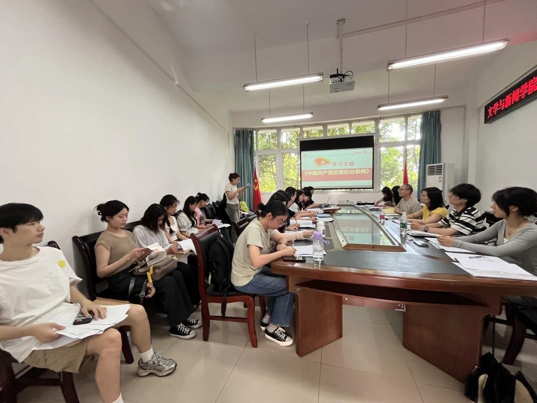 会上,刘平老师围绕深入学习贯彻习近平总书记关于党的自我革命的重要思想和系列重要讲话精神,带领支部党员学习了《中国共产党纪律处分条例》(以下简称《条例》)。围绕新版《条例》颁布的重大意义,围绕党的政治纪律、组织纪律、廉洁纪律、群众纪律、工作纪律、生活纪律进行集中学习,指出要逐张逐条学、联系实际学,明确言行标尺,校正思想行动。她强调,党员同志要以本次党纪学习为契机,时刻以正确的是非观念要求自己,以严格的自我约束完善自己,以坚定的理想信念警醒自己,准确把握好《条例》的精神实质,做到政治自觉、思想自觉、行动自觉,决不辜负党和国家的信任,时刻保持共产党员的先进性。