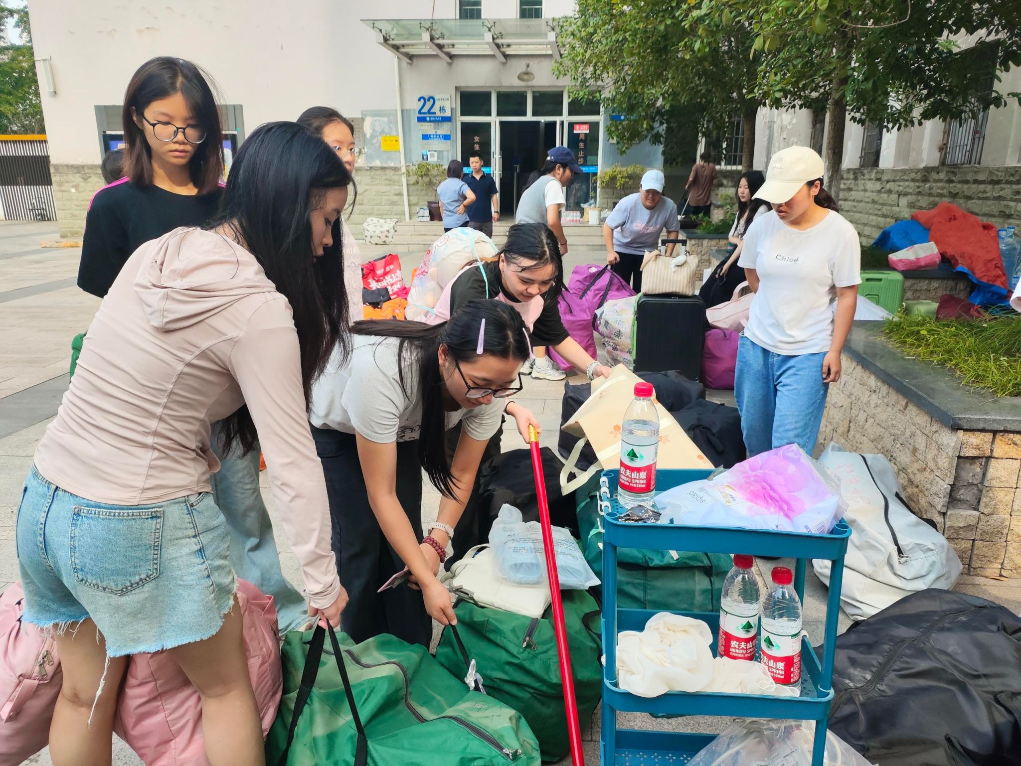 搬迁现场虽忙碌,但各环节衔接紧凑:货车刚到南5楼栋,志愿者便迅速完成行李装车;车辆抵达北23楼栋后,卸货、送寝同步推进,未出现长时间等待或行李堆积情况。不少搬迁同学在志愿者协助下,不到一小时就完成了从旧宿舍到新寝室的行李交接,省去了独自搬运行李的奔波,得以更快整理新寝室、适应开学节奏。