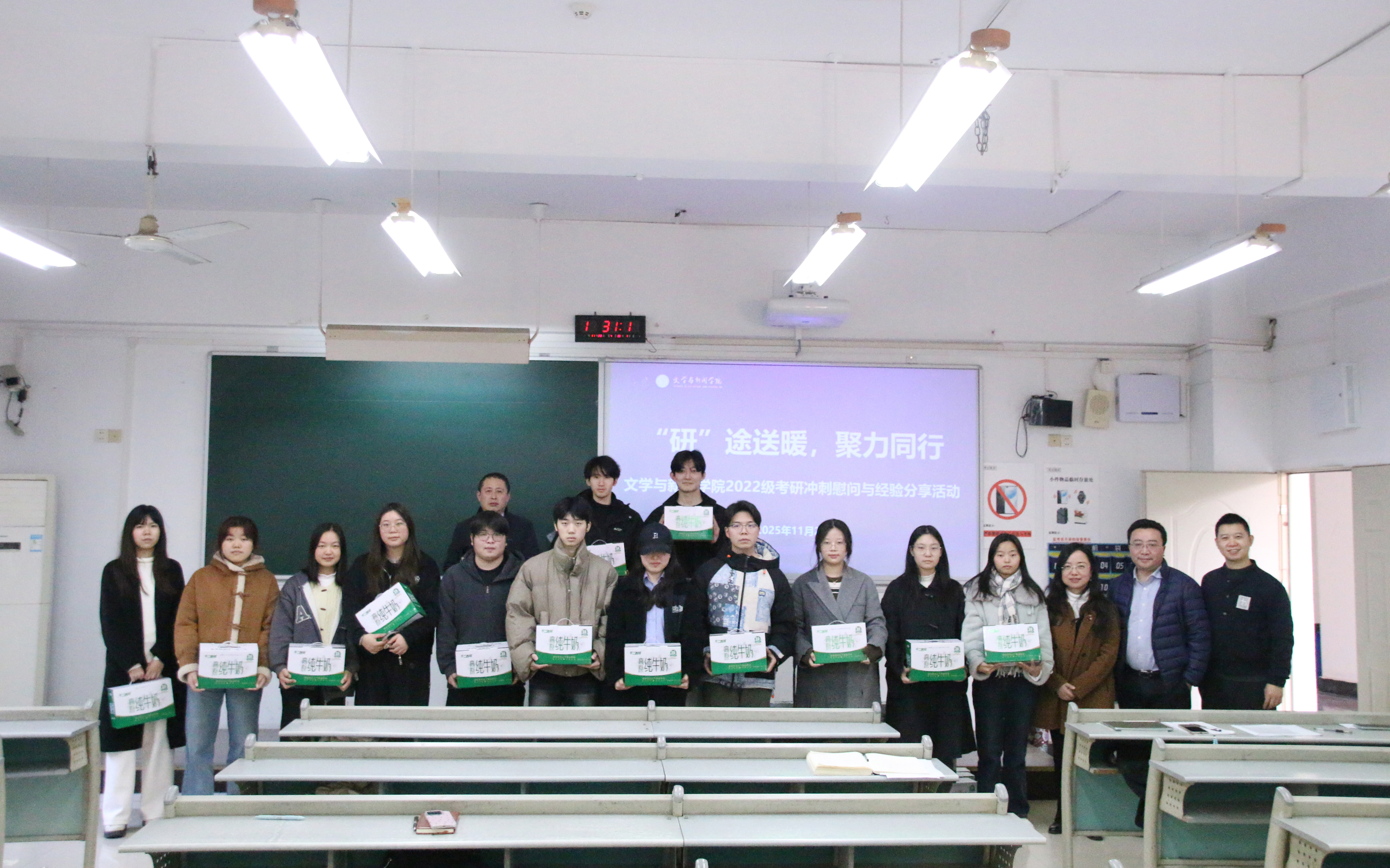 为切实做好2022级考研员工服务保障,凝聚育人合力,11月20日,公司在慧智楼90625教室举办“‘研’途送暖,聚力同行”2022级员工考研慰问暨经验分享活动。本次活动由公司“一站式”社区功能型党支部主办,党员服务站、新媒体社团参与。公司党委书记潘焱、经理殷俊、副书记程元元、2026届就业联络员李琦、考研员工代表出席活动,共同为2022级备考学子送上慰问关怀。