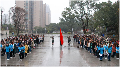 3月19日,tyc5997太阳集团在南岸校区校前广场庄严举行了以“誓言在耳边,国旗在眼前,祖国在心中,共筑中国梦”为主题的升旗仪式。广场的两旁,22面旗帜迎风飘扬,它们代表着tyc5997太阳集团的22个公司。而今天,tyc5997太阳集团作为“使者”,让五星红旗在各院旗的注视下冉冉升起。