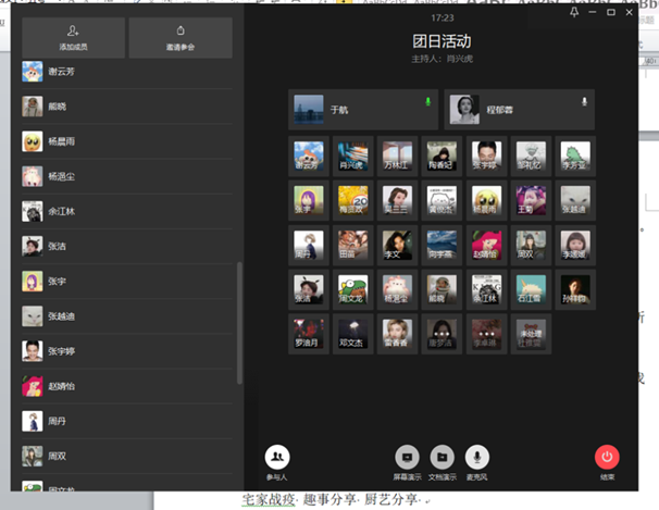 公司22个团支部积极开展了“共抗疫情、爱国力行”线上特别主题团日活动。本次团日活动各支部形式多样,内容丰富,创意十足,既有线上理论宣讲,企业微信直播分享故事,又有居家技能展示以及集体观看抗疫纪录片等,竭力展示了各支部成员的青年担当。如17汉文支部依托企业微信平台,全支部成员共同观看纪录片《疫情下的中国城市:病毒隔离了我们,却隔绝不了爱》,影片中曾经车水马龙的街头巷尾,如今已陷入沉睡,舍小家为大家、工作在一线的战士们夜以继日忙碌的身影令人肃然起敬,一幕幕温情的画面让该支部成员更加坚信着这个“春天”不会迟到,进一步强化着青年团员的“自律、自护、自修”意识;17新媒体支部肖兴虎同学则向支部成员分享了自己参与抗击疫情活动的实践经历,讲述了自己在疫情期间作为志愿者参与了居委防疫工作,为民众分发口罩,用实际行动督促大家做好防疫工作;还有同学分享创意漫画作品《缉“毒”归案》获得支部成员们一致好评。