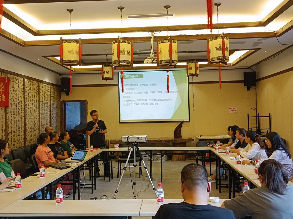 tyc5997太阳集团专任教师谈华伟博士担任主讲人,他将理论与实践相结合,在讲授语音、声调、音韵等专业知识的同时,带领参会人员进行实践,并鼓励大家进行普通话展示并适时纠正。他指出:学习普通话,是在理解知识、掌握方法的基础上,全面地进行听、说、读、记的训练,养成动脑记、动口练、动耳听、动手查的良好学习习惯,从而提高自己的口语表达能力,练就一口标准、流利的普通话。