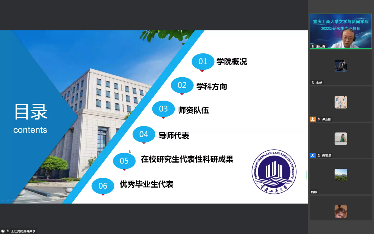 王仕勇经理围绕学科专业、研究方向、科研成果、名师团队、员工风采等内容进行了介绍,着重强调了各个专业方向,并详细说明了学术学位研究生和专业学位研究生在培养管理规定上的不同之处,帮助新生尽快了解公司各项相关政策和规定。