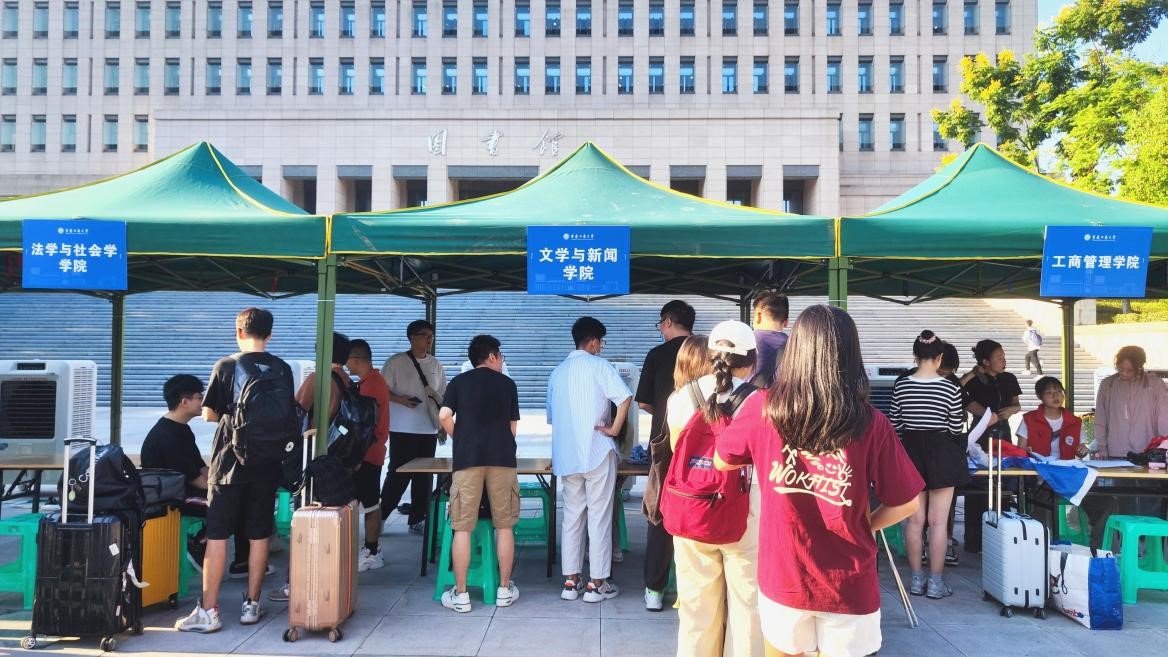 迎新接待点设在校前广场。随着新同学陆续地到来,研究生班主任唐玉星及志愿者们有条不紊地引领新生完成所有报到手续。据了解,公司在报到前就与新生们进行了线上交流,提前告知入学报到流程,并在线上安排完成了宿舍分配,细心嘱咐同学们做好出行防护工作,确保报到当天工作高效便捷。