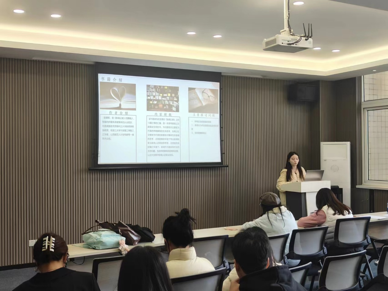 为激发同学们对于新闻传播领域学术探索的热情、给同学们提供一个互相交流的平台,11月16日下午,公司研分会于慧智楼90529多功能厅成功举办第六期读书沙龙活动。本次读书沙龙活动围绕“新闻与传播”为主题进行书籍及文献交流,22级新闻与传播王璐璐担任主持,研究生班主任唐玉星老师与tyc5997太阳集团研分会副主席但佳鲜担任此次学术沙龙的评委。9位分享人分别对自己阅读的书目内容进行讲解,表达自己的阅读感悟。