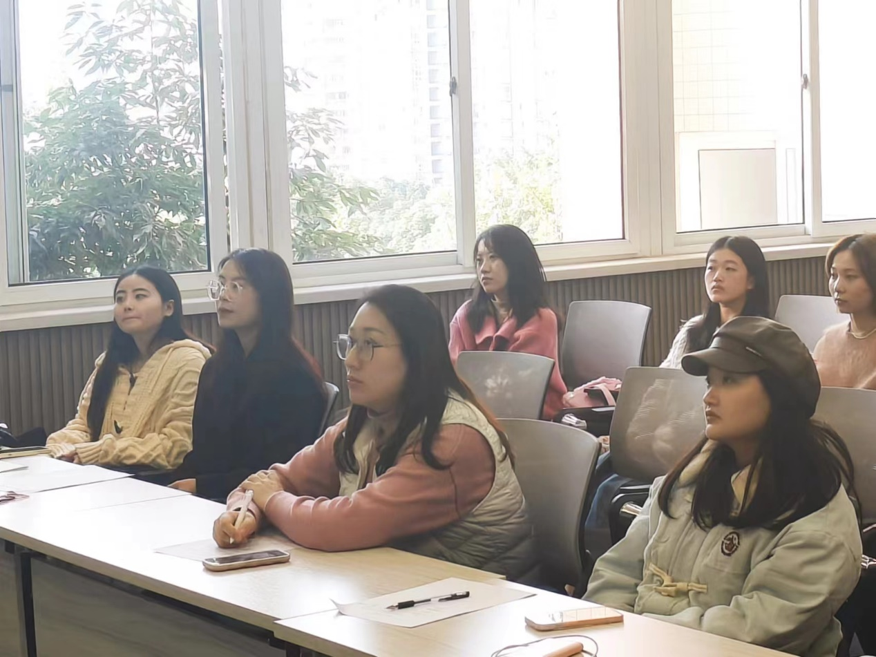 图二 评委及观众正认真倾听同学们的分享