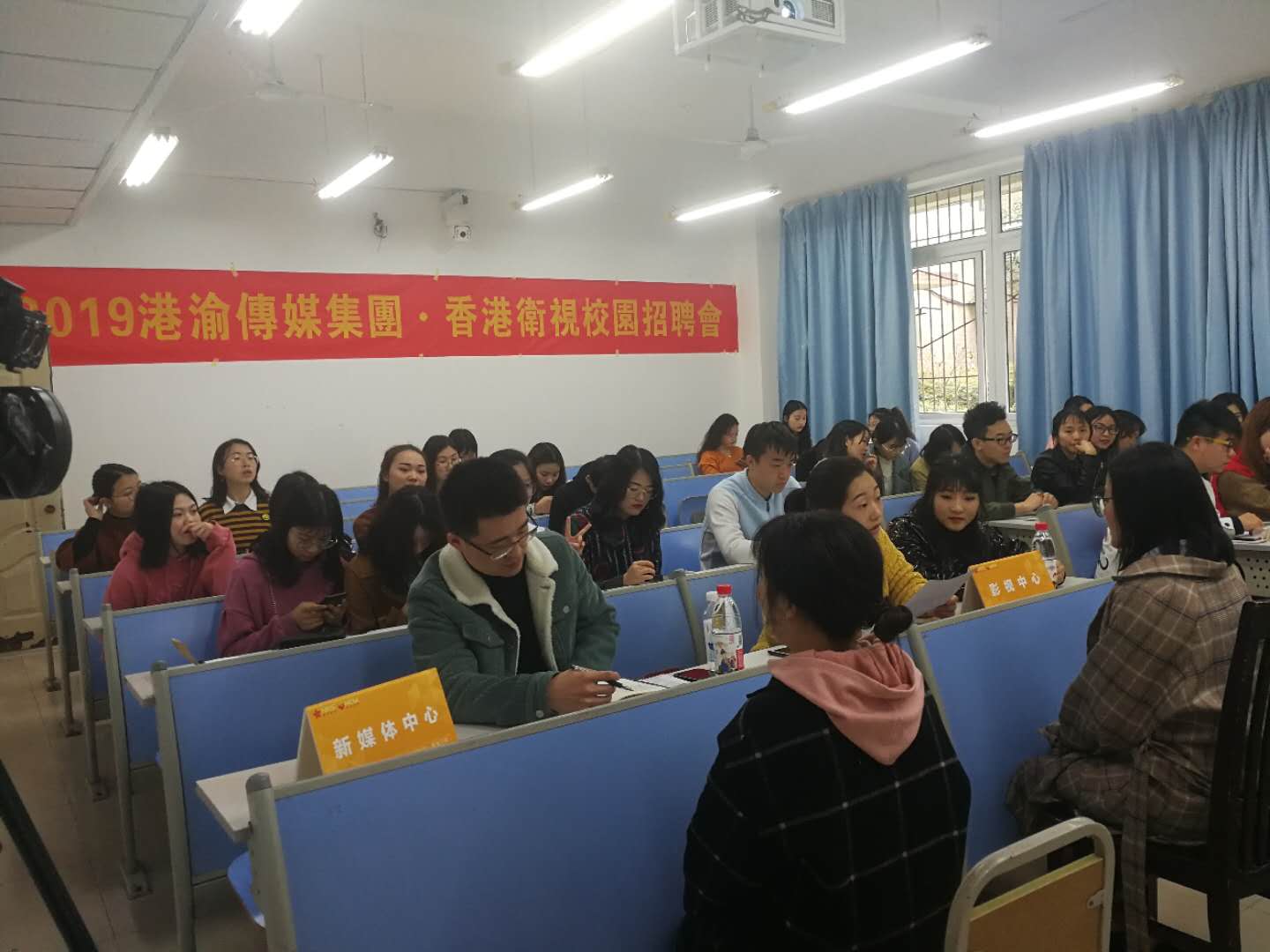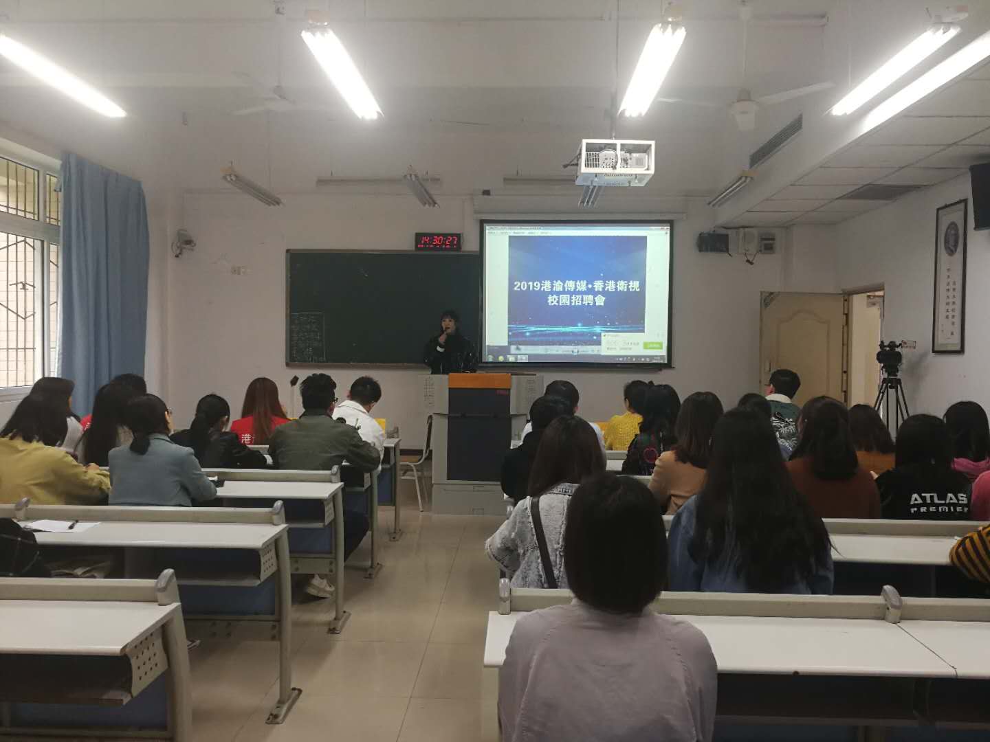 3月26日下午,港渝传媒集团·香港卫视在90201教室举行tyc5997太阳集团专场招聘会,公司就业联络员肖婷老师、2019届40余名员工参加了招聘会。