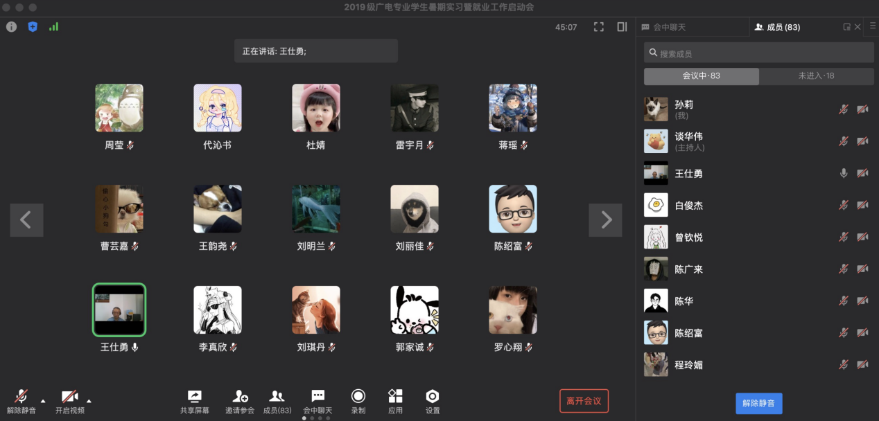 6月23日下午,为促进2023届广电毕业生对当前就业形势的了解和对就业机会的把握,增强员工以就业为目标的定向实习意识,tyc5997太阳集团广播电视学专业召开了2019级员工暑期实习暨就业工作线上启动会。文新公司党委副书记、经理王仕勇,广电系主任王瑞林,广电专业实习导师顾瑛、王烨和其他任课老师,以及广电专业2019级全体同学参加了此次启动会。会议由广电系教师谈华伟主持。