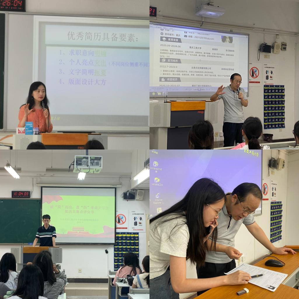 5月15日至5月18日,评审老师们走进各个班级,对此次简历大赛进行点评和交流分享,老师们选取优秀简历作品在班级进行展示,并针对部分同学的简历进行一对一指导和帮扶。通过此次分享交流,提高了同学们对简历制作的认识,深入了解如何完善自己的简历,打造个人求职靓丽的“名片”,增强求职中的竞争力。