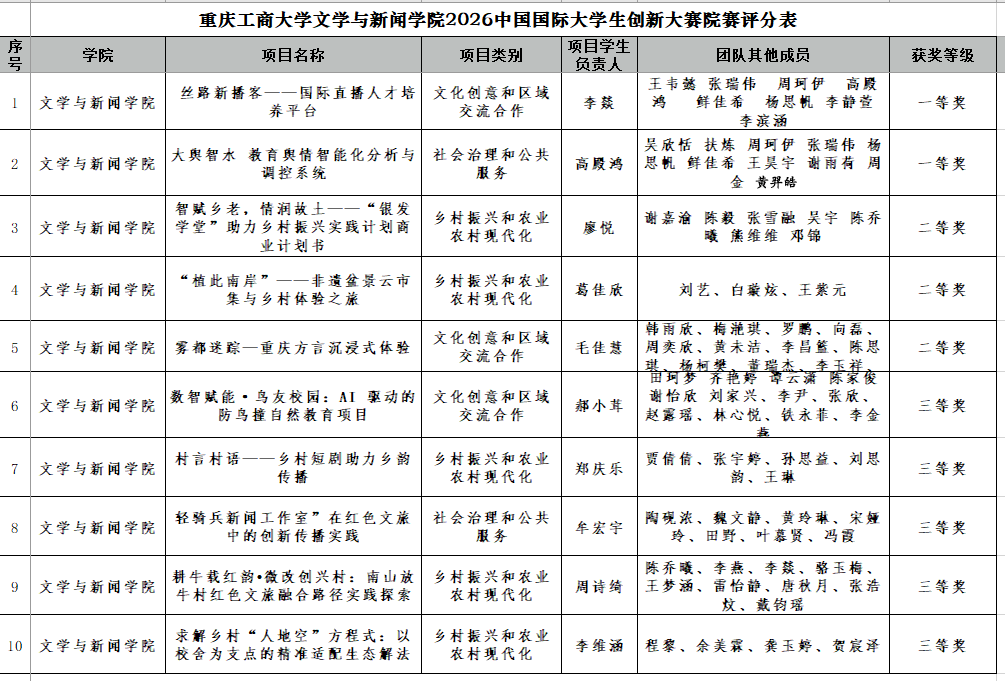 本次大赛自2025年10月启动以来,共吸引全院多支员工团队踊跃参与。经校外专家严格评审,最终评选出一等奖2项、二等奖3项、三等奖5项,充分展现了文新学子勇于创新、敢于实践的良好风貌。