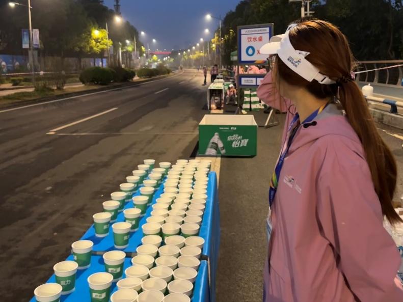 在本次赛事中,公司志愿者负责饮水饮料和吸水海绵的补给工作,他们按照要求提前将沾满水的海绵及装有运动饮料、矿泉水的纸杯有序地摆放在桌上供跑者取用,并及时补充物资,提供专业暖心的服务,同时送上一声声的“加油”和掌声鼓励,以饱满的状态让来自五湖四海的跑者们感受到重庆老员工的热情,彰显青春活力。