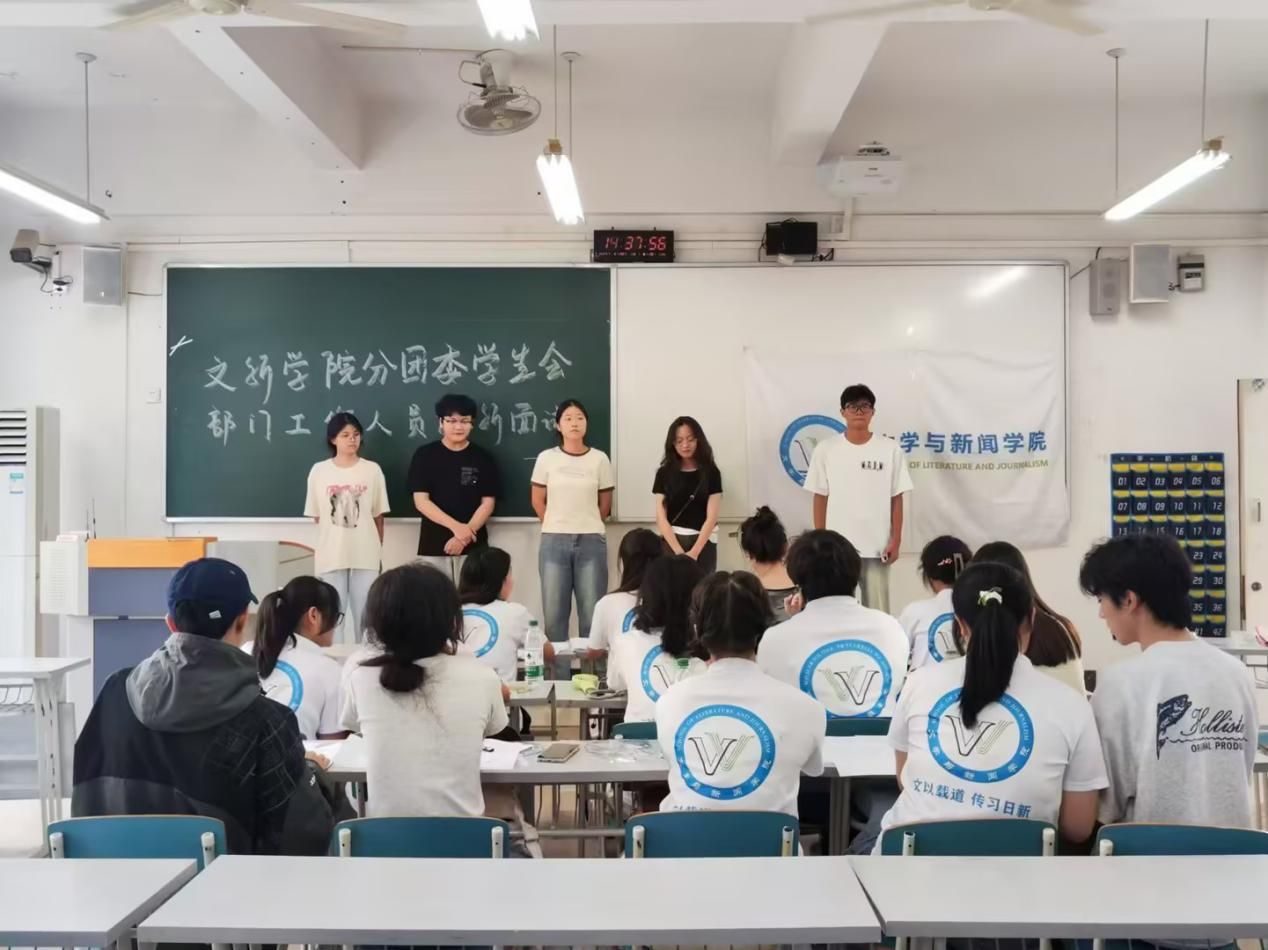 在同学们对各部门的工作情况有所了解的基础上,9月22日下午公司分团委员工会主席团成员、各部门负责人代表共23人在江北校区B506教室进行现场招新面试。新媒体工作室与“文小青”青年志愿者服务队在企业微信上进行线上面试。