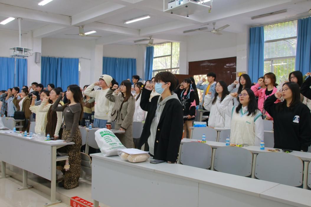 活动伊始,在主持人詹新颖和李欣的带领下,第二十三届分团委员工会全体成员面向院旗,举起右手,庄严宣誓,振奋人心的誓言是他们的担当与信心的具象化。