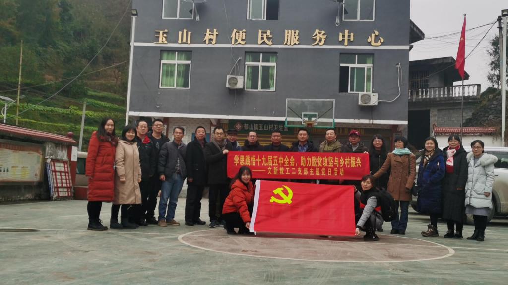 为学习贯彻党的十九届五中全会精神和贯彻落实习近平总书记关于扶贫工作的重要论述,12月4日至5日,文学与新闻公司教工二支部组织教职工党员到彭水县贫困村玉山村开展“学思悟践十九届五中全会 助力脱贫攻坚与乡村振兴”主题党日活动。