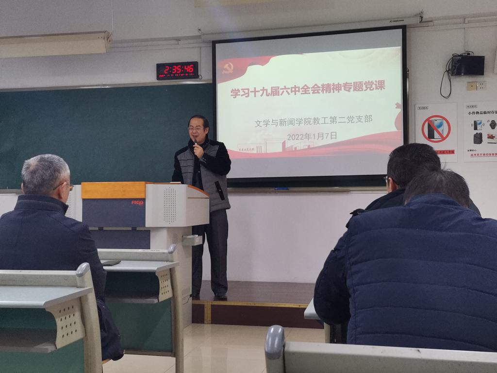 1月7日下午,公司教工第二党支部在90625教室举办了学习十九届六中全会精神专题党课,支部书记邵茹波副教授主讲,支部全体党员参加了党课学习。