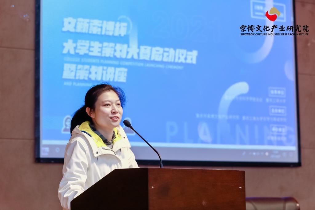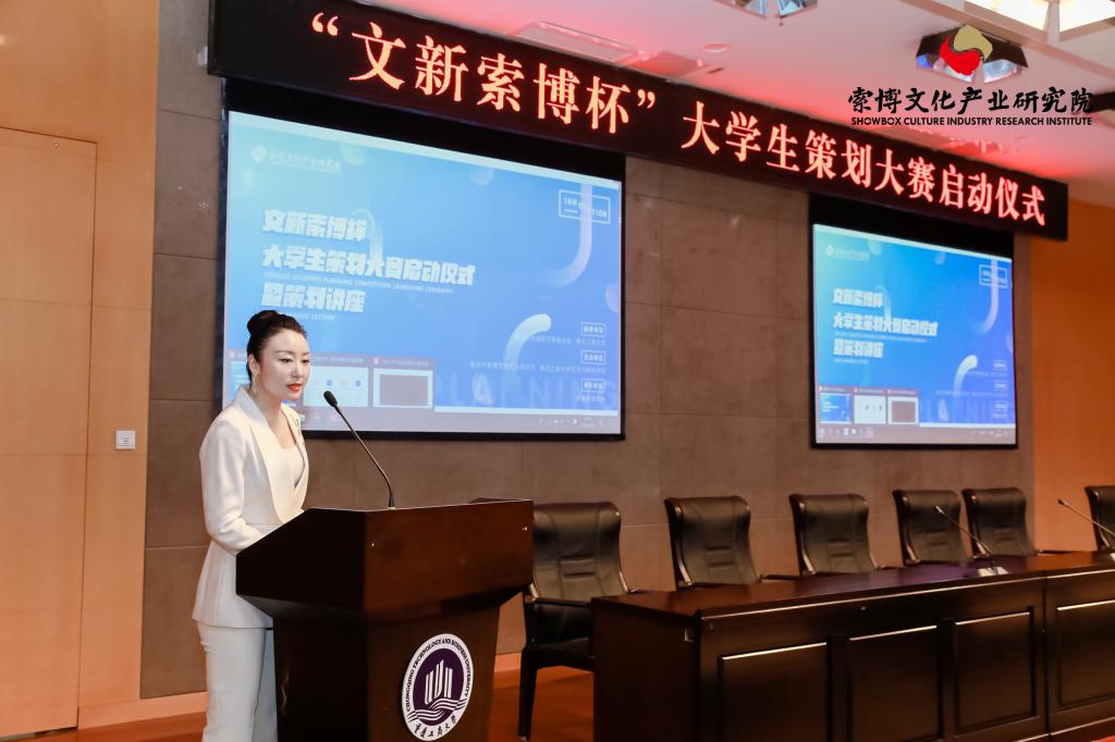 王小蓉理事长在启动仪式上简要介绍了索博文化产业研究院的情况及校企合作计划。随后,研究院资深策划人袁长城结合实际案例,向同学们生动讲解了策划工作的具体事项和要求。